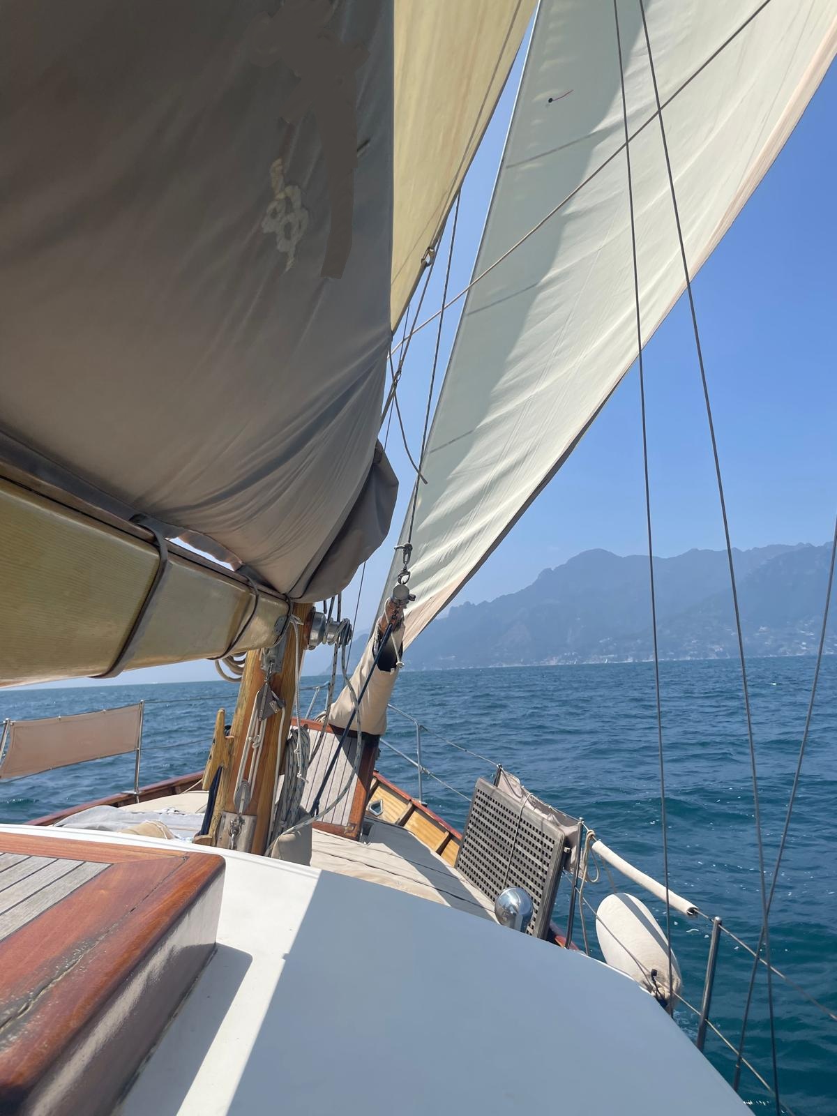 Piccolo motorsailer classico di L. Giles, estremamente vivibile e comodo pur nelle dimensioni contenuti e di facile gestione; necessita manutenzione vernici e smalti. SLOOP BERMUDIANO POZZETTO CENTRALE anno di costruzione : 1955 anno immatricolazione: 1956 costruttore: Carlini modello: Ghibli progettista: Laurent Giles (progetto originale in disponibile) scafo mogano lunghezza: m 13,15 lunghezza al galleggiamento: m 11,20 larghezza: m 3,60 pescaggio: m 1,80 dislocamento: 18 tons albero in legno superficie velica: mq 80,20 tipo di vele in dotazione: randa, genoa, yankee, trinchetta bomata,gennaker motore: 120cv ford C-POWER MARINE LTD/380 entrobordo gasolio capacità carburante: n.2 serbatoi 200 l tot 400 l capacità serbatoi acqua: n.2 serbatoi 400 l tot 800 l bandiera italiana rina fino al 30.03.27 dotazioni di bordo: • navigatore gps lorenz • pilota automatico • whf lowrance link 6s marine • salpaancora elettrico • catena m 70 • ancora in acciaio lucido • elica max pro interni: • dinette con divani trasformabili in due letti • cabina prua 2 posti letto • cabina poppa 2 posti letto • bagno con doccia • angolo cucina con fornelli a gas con forno basculanti e frigo autoclave inverter boiler 30lt n.2 doccette esterne, a prua e a poppa, di cui quella a prua con acqua calda n.2 batterie servizi da 200 ampere (2025) n.2 batterie motori da 200 ampere (2025) autogonfiabile Sono disponibili i seguenti progetti originali: