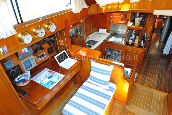 Great example of Anselmi Boretti “modern/classic”. A real innovative, light, luxury, comfortable yacht: if You think she was designed and built in 1969, You can’t believe it. Flush deck and bright interior with a lot of space, she can be easily compared to much newer kind of yacht. All this, but with taste and flavour of a classic wooden boat. This sloop is a proof -only one of the proofs of a numerous and various yachts designer career- of what a kind of genious was Franco Anselmi Boretti. Hull and teak deck in perfect shape, alluminium mast, Reckman rigged, fully equipped, this sloop is strong and structurally ok.