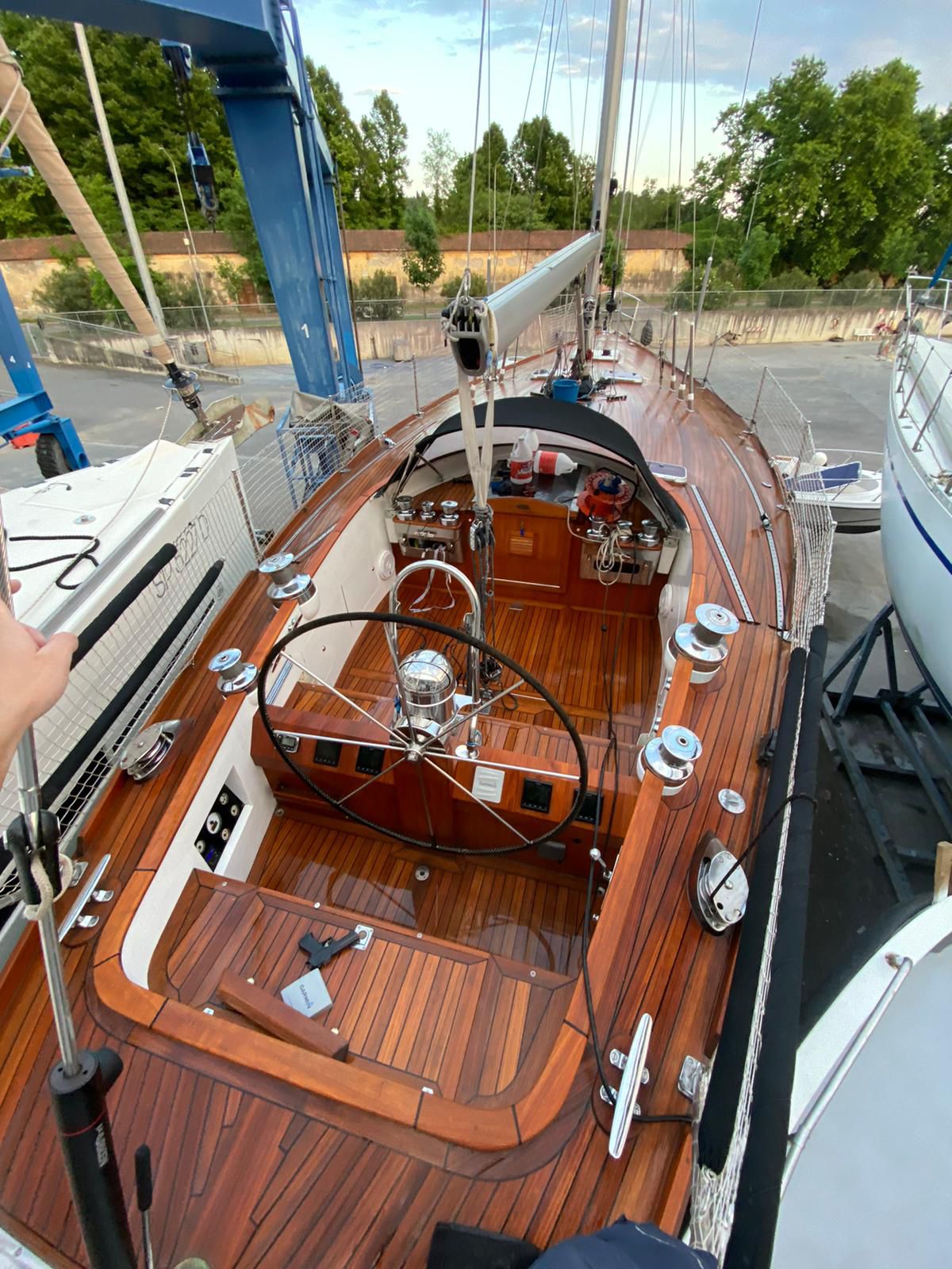 Completamente restaurata dal Cantiere de Cesari nel 2013 Coperta Pozzetto Interni Impianto elettrico Scafo sabbiato Fondo trattato con vernice Epossidica Verniciata scafo in Awlgrip