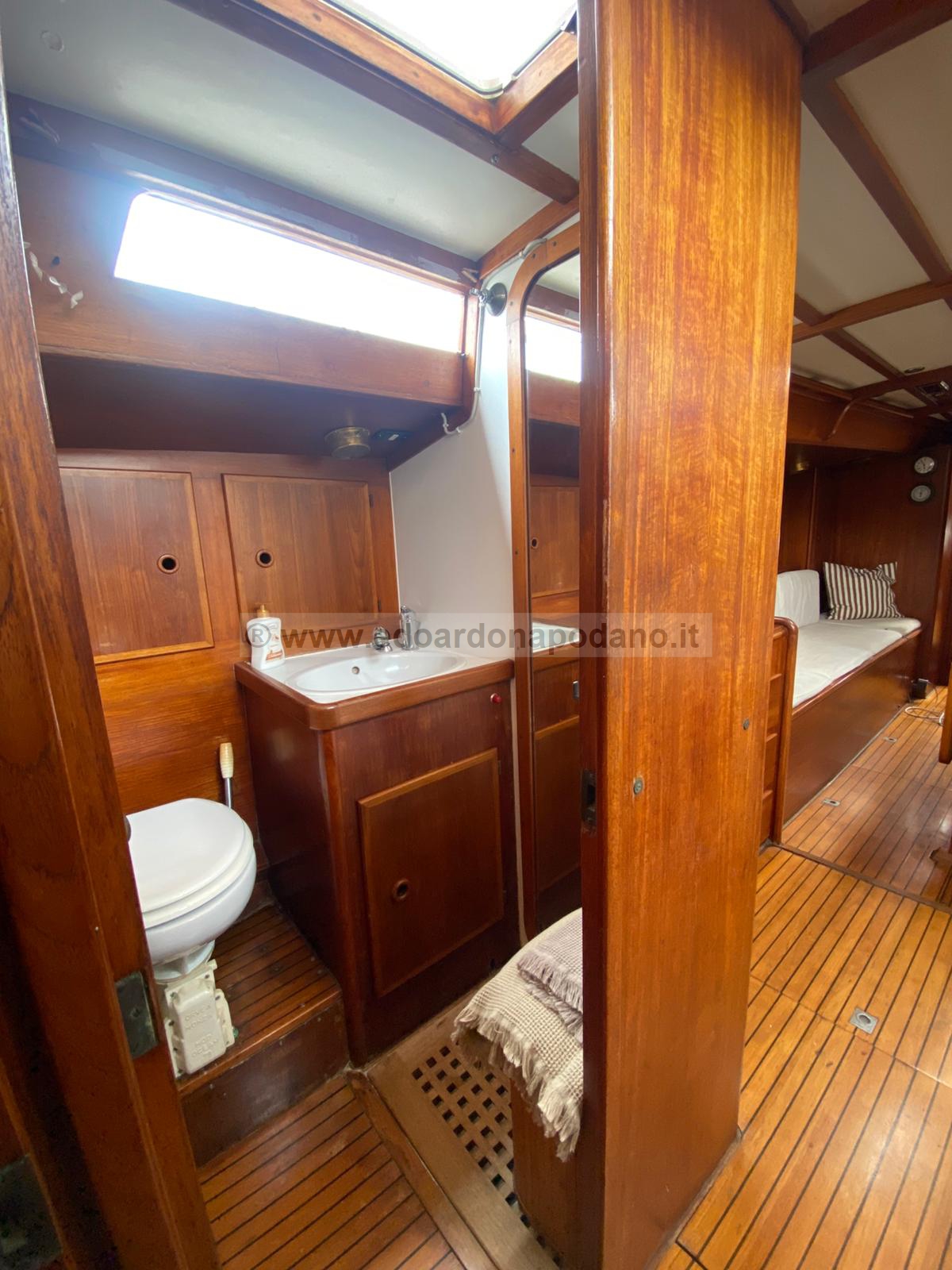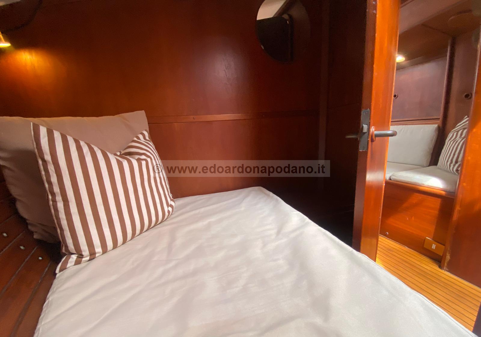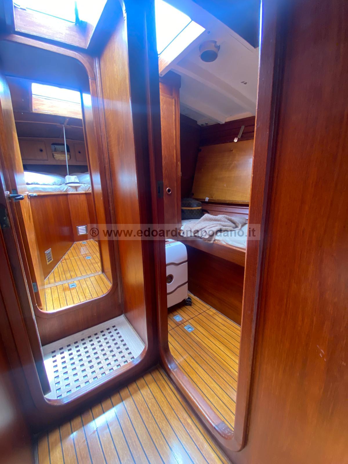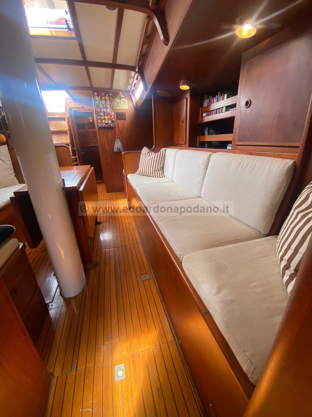 | descrizione interni: | cabina di poppa a due letti grandi, Bagno principale wc man. e doccia, cucina a dx, carteggio a sx, quadrato con due posti letto, cabina singola, bagno con wc elettrico e doccia, cabina di prua. | ||