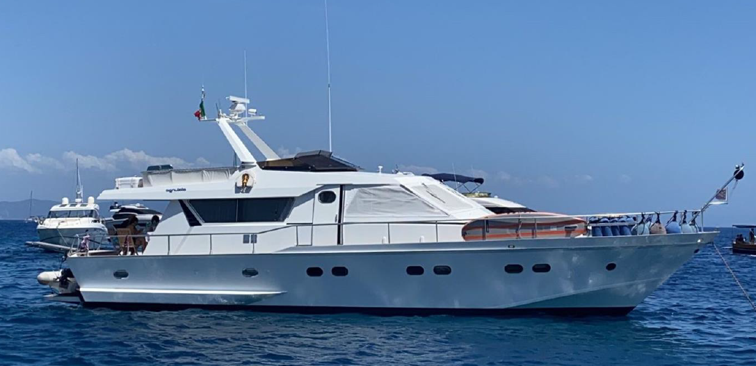 Lavori 2024: rifacimento di tutto il fondo dello scafo e dello spigolo di carena (opera viva) presso storico cantiere – rifacimento dei passaggi a scafo di assi e timoni – istallazione elica di prua – sostituzione di tutte le prese a mare – sostituzione di tutte le tubazioni acqua dolce – istallazione nuova antenna SAT TV – rifacimento a nuovo delle masse elettriche.