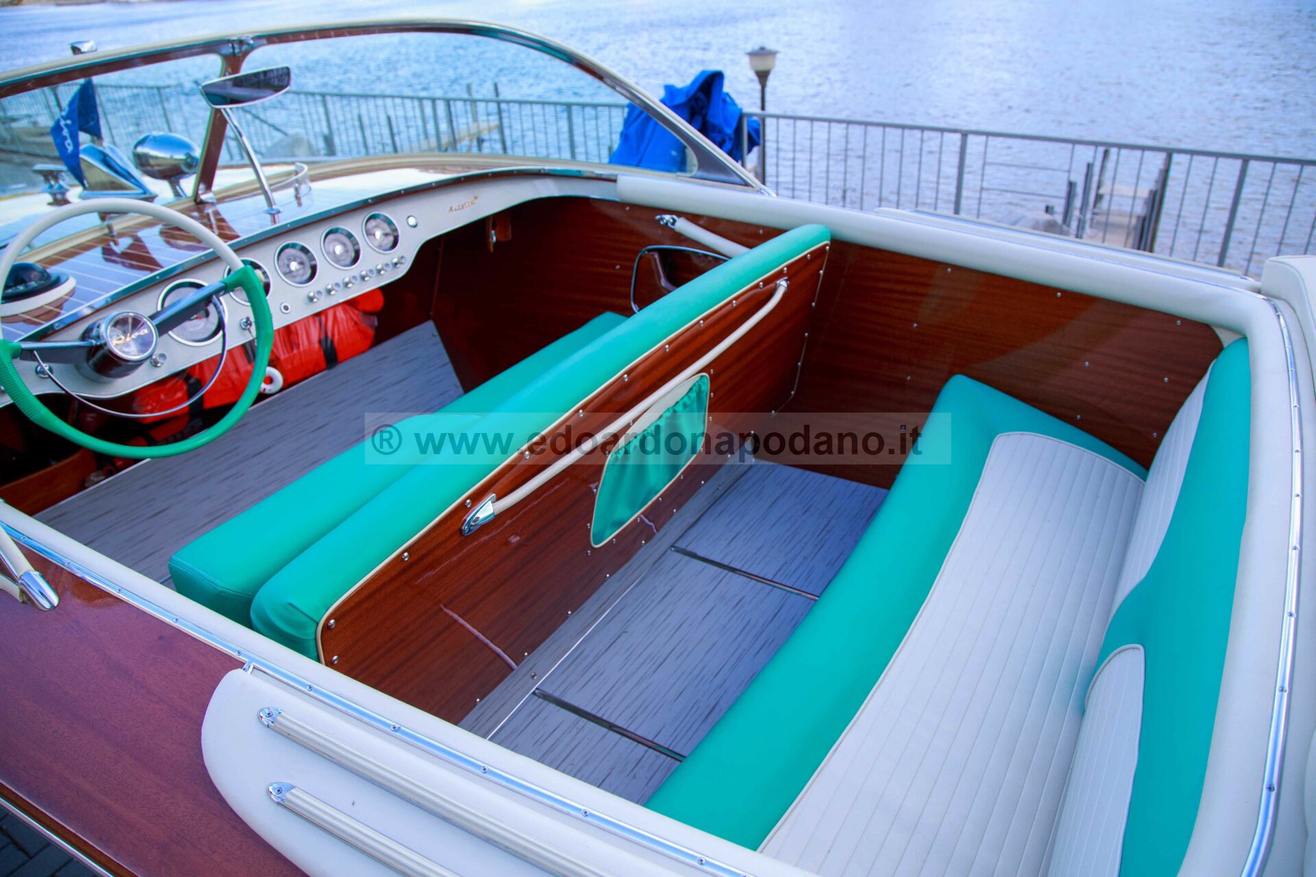 Great total restoration for this 1961 Riva Ariston: bottom, sides, everything in mint shape and original engine. Builder: Riva Mod: Ariston Year: 1961 Loa: mt 6,52 Beam: mt 2,16 Displ: 1,36 t Engine: 177 HP Chrysler SEA – V M80 original Max speed: 36 nodi Tank: 160 l Passengers: 6 Download PDF