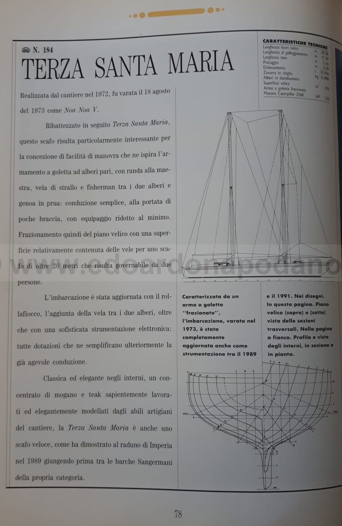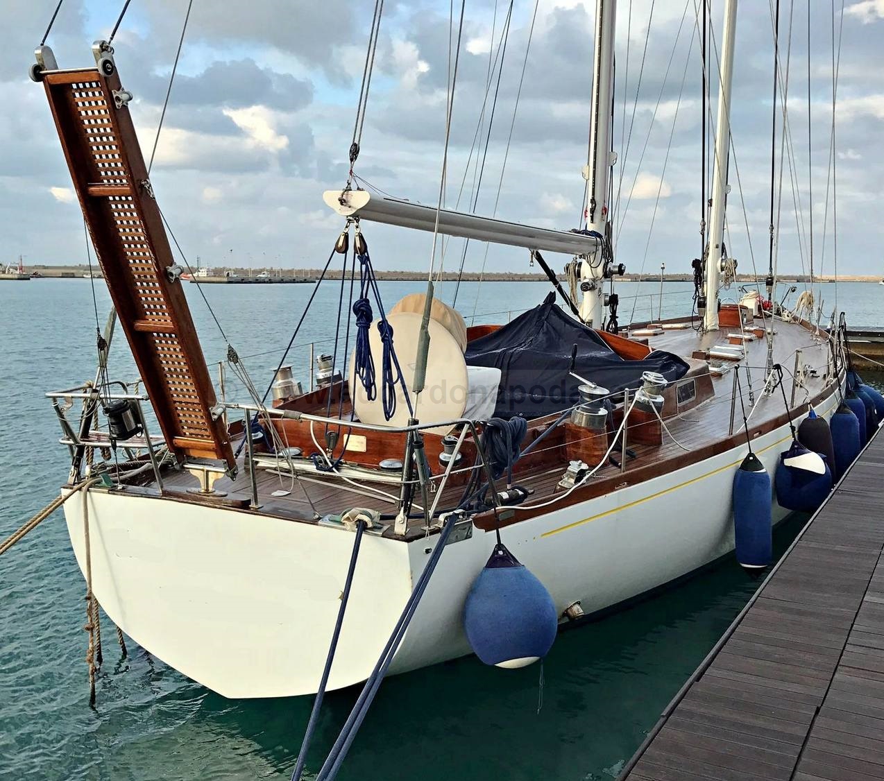 Great bargain – MOTIVATED SELLER – Terza Santa Maria was launched in 1973, designed by Cesare Sangermani. Her original name was Noa Noa V; construction number 184. Staysail Schooner. The boat is built of mahogany wraps glued screwed to oak frames with bronze screws. Teak deck and superstructures, cherry interior. Excellent paints, finishes, details, wood, fabrics and upholstery. Hull repainted in 2014, teak new rubber in 2018, rigging replaced in 2015, new mainsail forestay and sail 2018 – Engine replaced in 2007 – Atlantic crossing in 2004 – Refitting in 2012 with replacement of planks, doubling of 8 frames. Only two owners.