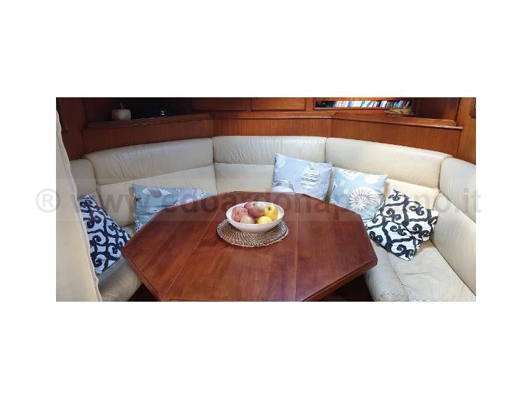 Altoparlanti, Aria condizionata, Barometro, Binocolo, Boiler, Carte nautiche, Cassetta di pronto soccorso, Congelatore, Cucina, Cuscineria Pozzetto, Digitale Terrestre, Dissalatore (200 lt\h), Dotazioni di sicurezza oltre 50 miglia, Forno, 2 Frigorifero interno, Impianto TV, Inverter, Lavatrice, Piastra in vetroceramica, Prese interne 12v, Prese interne 220v, Riscaldamento, Stereo, Telo copriconsolle, Tendalino, TV, 4 WC marino elettrico, Zattera di salvataggio, Randa, Genoa, Attrezzatura Gennaker, Attrezzatura Spi, Avvolgi Fiocco, Carrelli a sfera randa, Strallo di Trinchetta, Tenditore strallo di poppa, Trasto randa, Vang