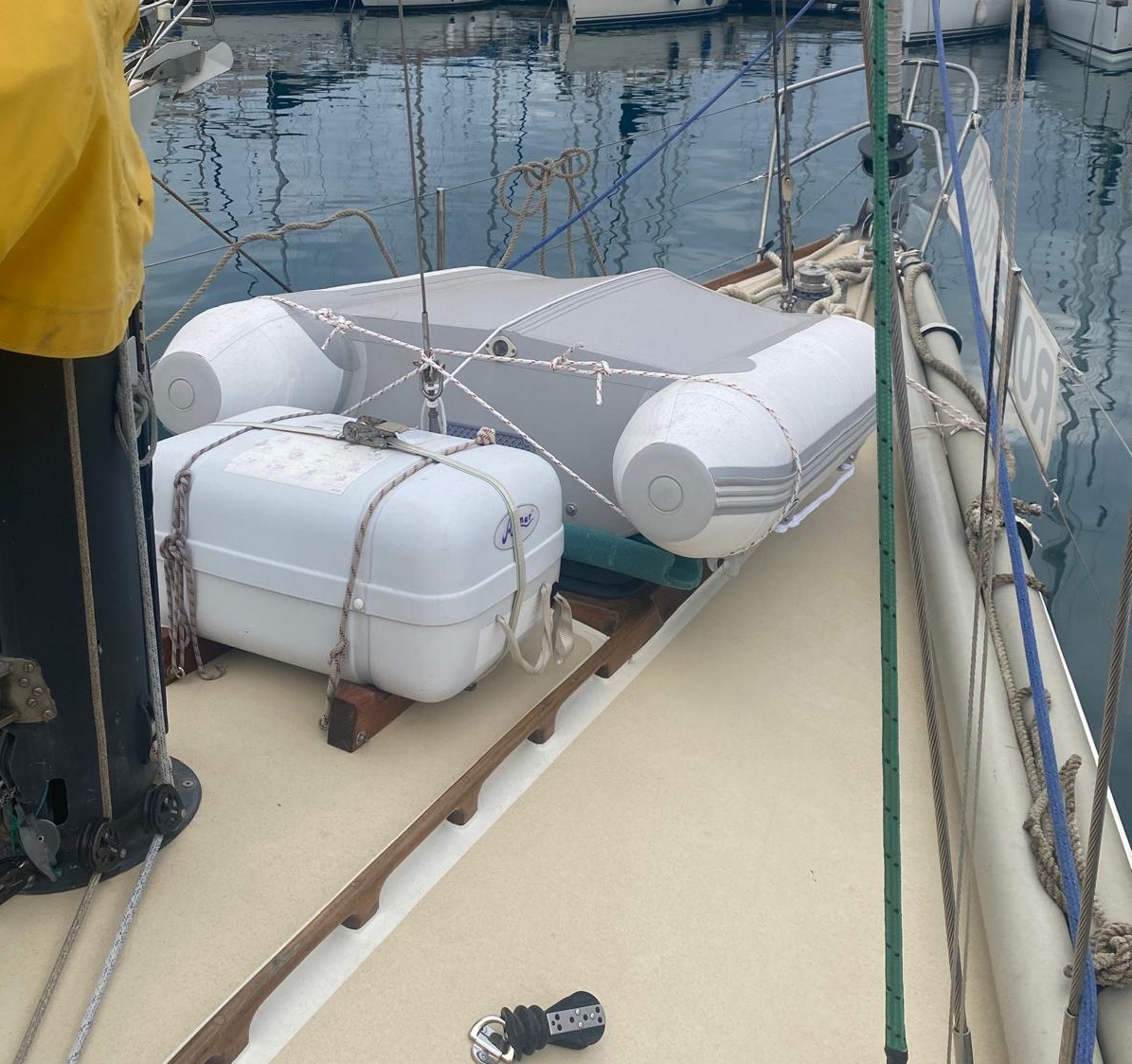 – tender nuovo (2024) con motore Honda 2,3cv, portamotore sul pulpito di poppa, scaletta/